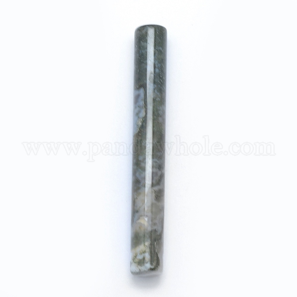 • Мосс Агат Природные моховой агат бисером, колонка, неочищенные / без отверстий, 75~76x10 мм
