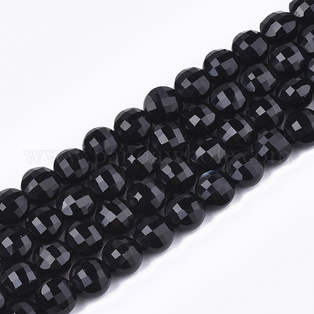Натуральный черный агат бисер нитей, окрашенная и подогревом, граненые, плоско-круглые