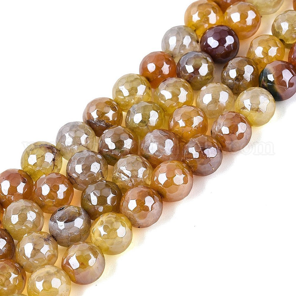 • Кремово-белый Гальваника натуральный огонь треск бусины из агата, окрашенные, граненые, гальваническое покрытие, круглые, кремово-белые, 8.5x7~8 мм, отверстие : 1.2 мм, около 47~48 шт / нитка, 13.78 дюйм ~ 13.98 дюйм (35 см ~ 35.5 см)