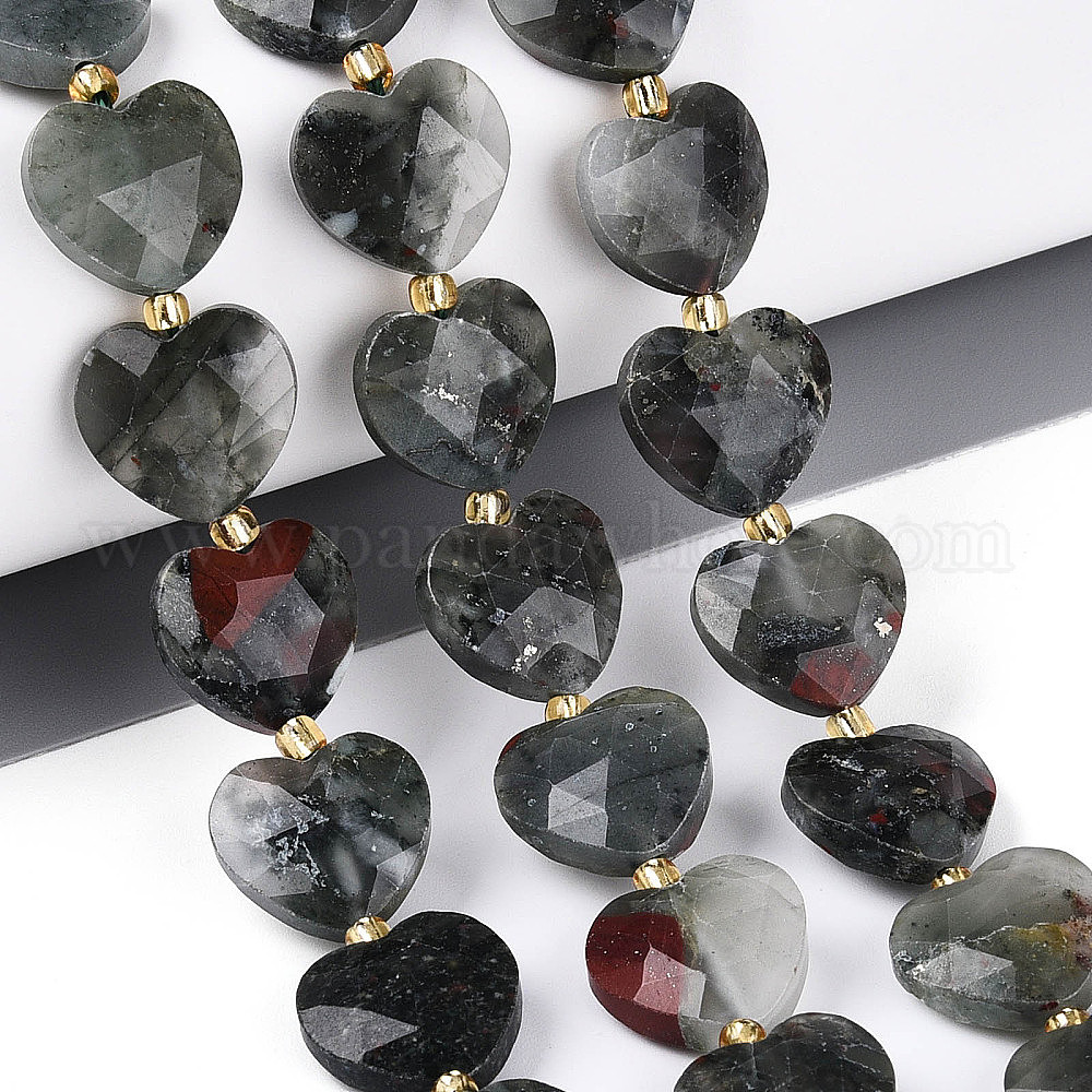 Природные африканские гелиотроп бисер пряди, граненое сердце, с бисером