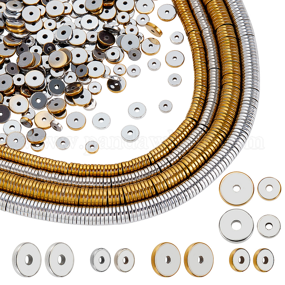 4 нити 4 стили гальванизированные немагнитные синтетические гематитовые бусины нити, Heishi бусы, Плоский круглый / диск