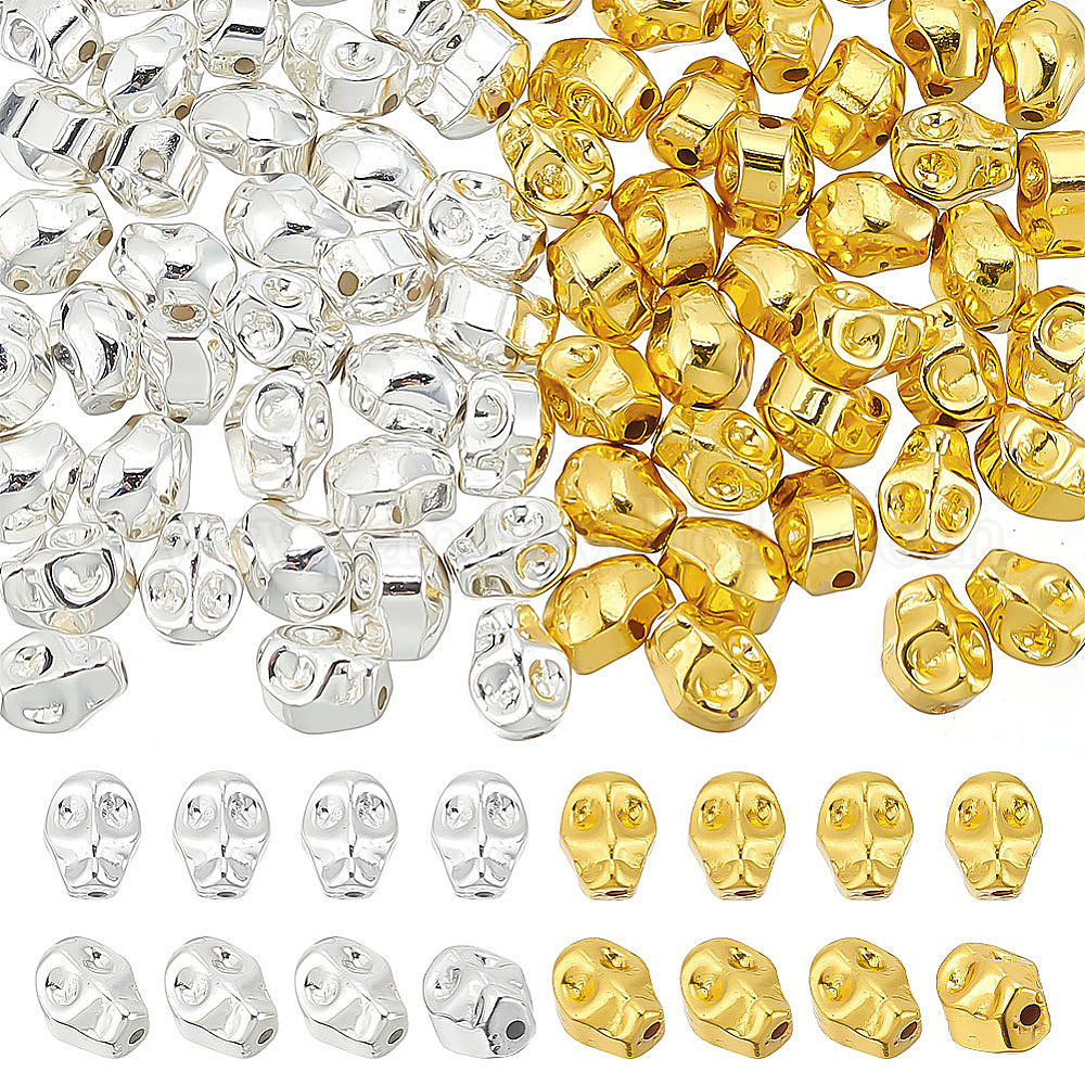 100шт 2 цвета гальванизированные немагнитные синтетические гематитовые бусины, класс АА, череп (02PQXM)