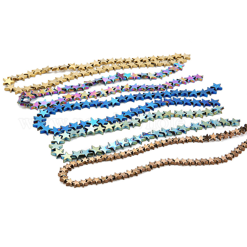 • с Золотистым Покрытием Гальванические нити из синтетических немагнитных гематитовых бусин, бисер нитей, звезда, с золотым покрытием, 6 мм, около 62 шт / нитка