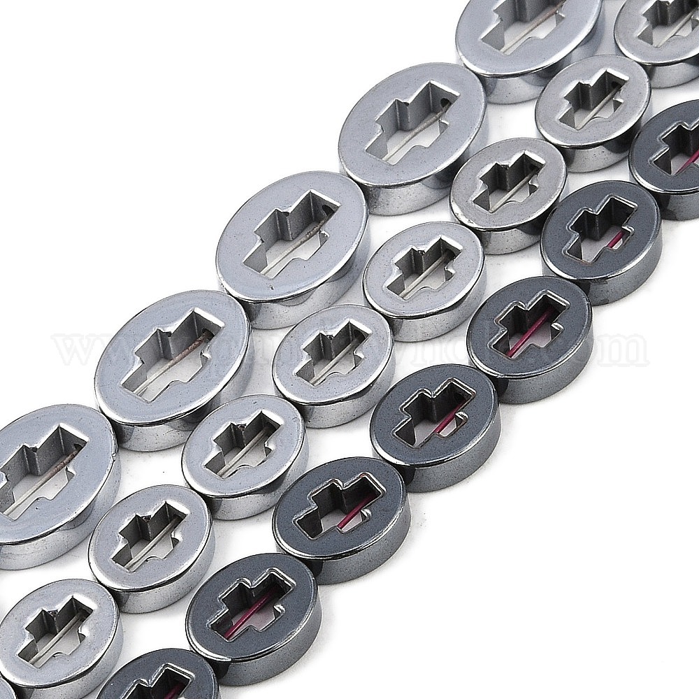 Гальванические нити из синтетических немагнитных гематитовых бусин, овал с полым крестом