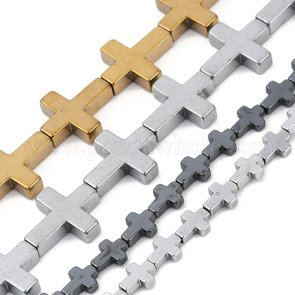• с Платиновым Покрытием Гальванические нити из синтетических немагнитных гематитовых бусин, крестик, с покрытием платиным, 14x17x4 мм, отверстие : 1 мм, около 23 шт / нитка, 15.75'' (40 см)