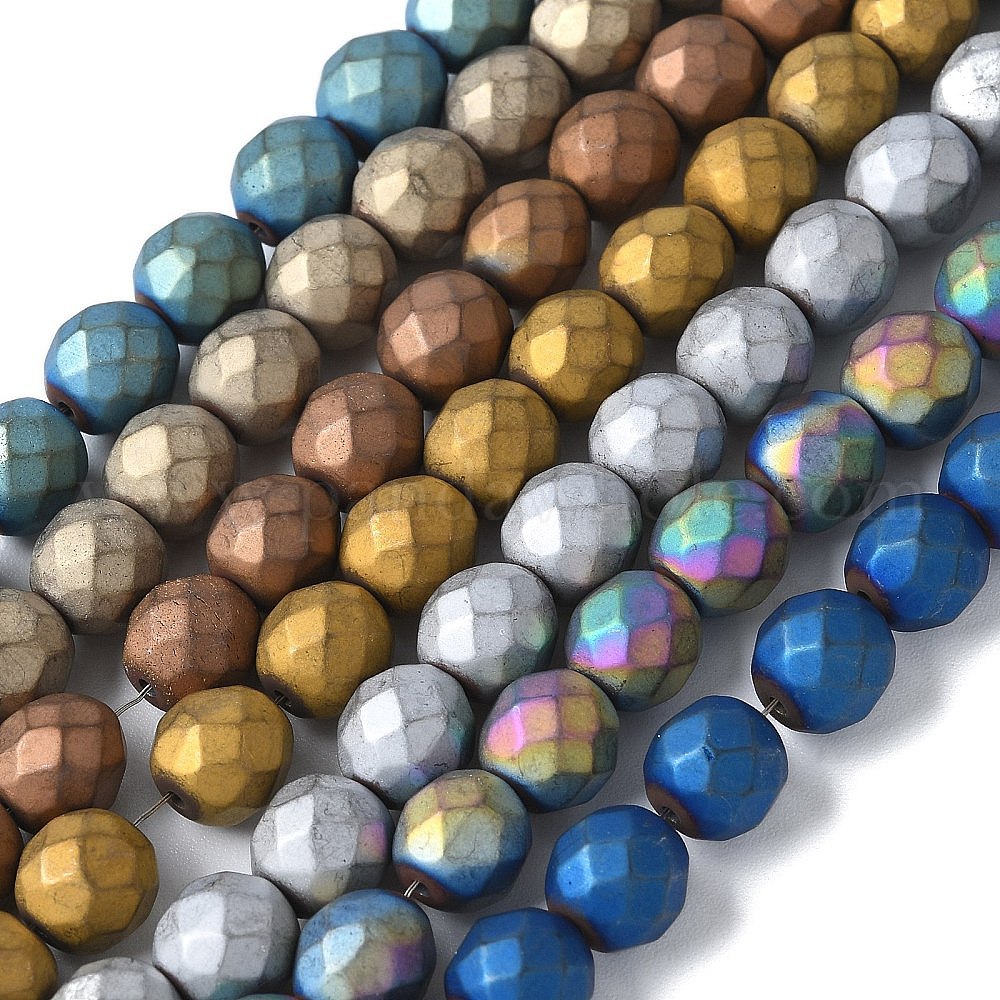 Гальванические нити из синтетических немагнитных гематитовых бусин, круглые, граненые