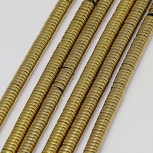 • с Золотистым Покрытием Гальванизировать немагнитных синтетический гематит бисер пряди, плоско-круглые, класс А, с золотым покрытием, 3x1 мм, отверстие : 1 мм, около 400 шт / нитка, 16 дюйм