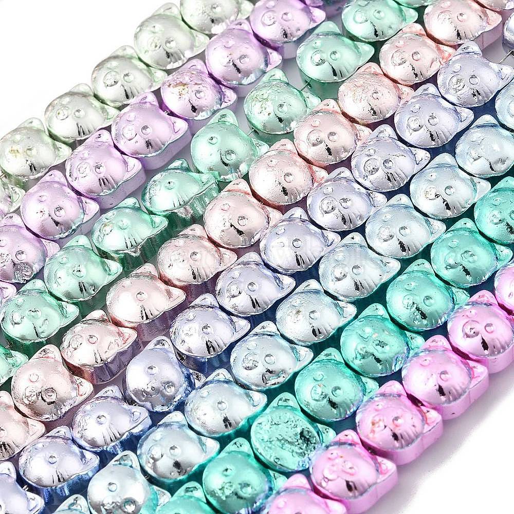 • (52) Непрозрачная лаванда Гальванические нити из синтетических немагнитных гематитовых бусин, форма головы кошки, разноцветные, 8x8x7 мм, отверстие : 1 мм, около 55 шт / нитка, 16.22'' (41.2 см)