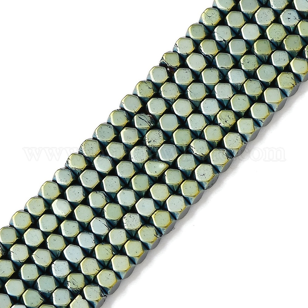 • Зеленое Покрытие Гальванические нити из синтетических немагнитных гематитовых бусин, класс AAA, долговечный, граненые, кубические, зеленый покрытием, 2x2x2 мм, отверстие : 0.5 мм, около 198 шт / нитка, 15.75'' (40 см)
