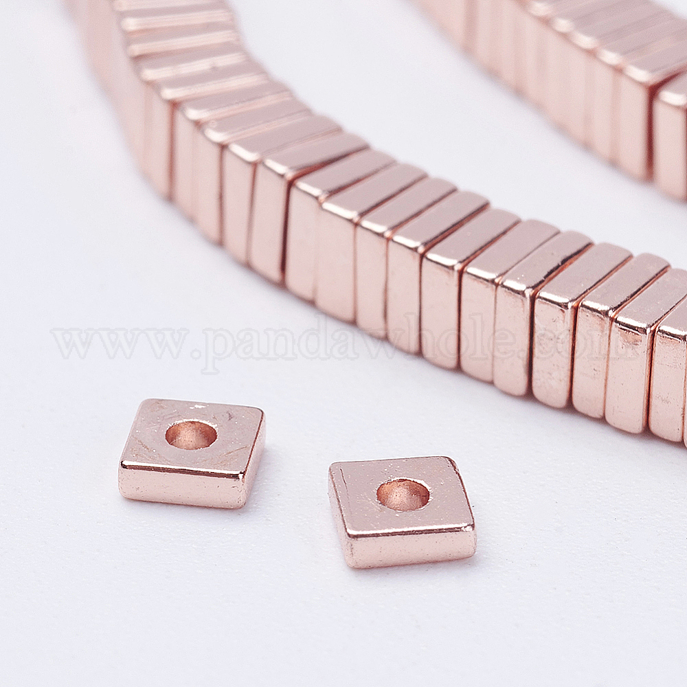 • Гальванический Розовый Золотой Гальванизировать немагнитных синтетический гематит бисер пряди, квадратные бусины хейши, покрытием из розового золота, 3x3x1 мм, отверстие : 0.5 мм, около 386 шт / нитка, 16.5 дюйм (42 см)