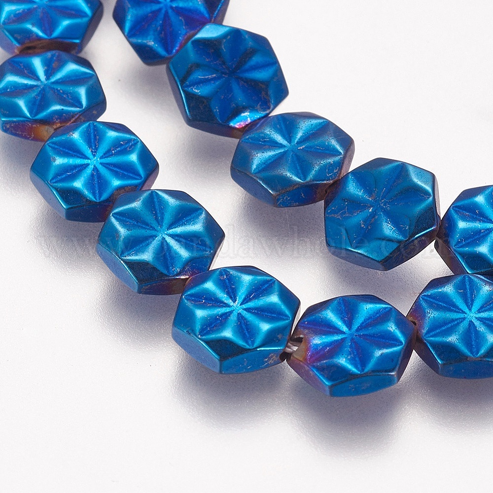 Гальванические немагнитная синтетический гематит бисер пряди, класс АА, шестиугольник с цветком