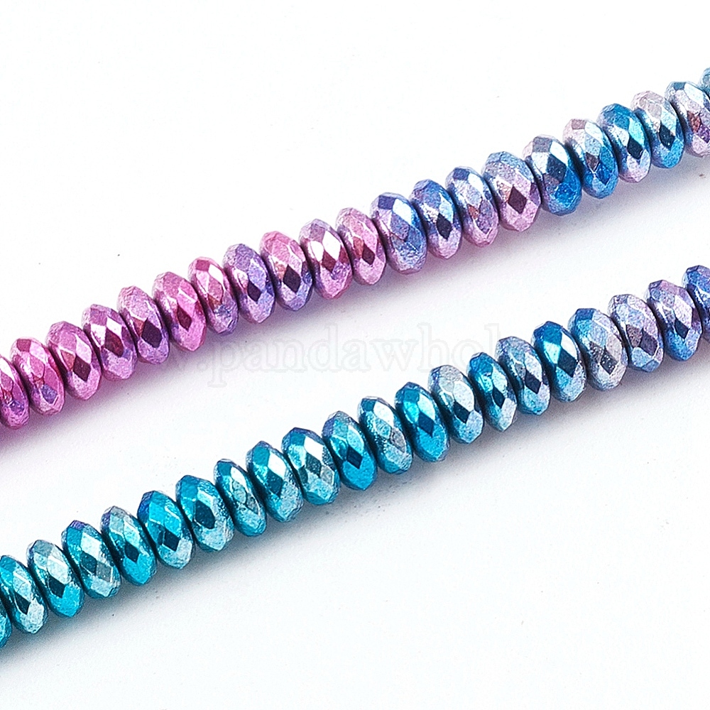 • (966) Внутренний цвет Кристалл / Лиловато-лиловый на подкладке Гальванические немагнитная синтетический гематит бисер пряди, полное покрытие, рондель, граненые, с покрытием разноцветным, 4x2 мм, отверстие : 0.8 мм, около 200 шт / нитка, 16.14 дюйм (41 см)