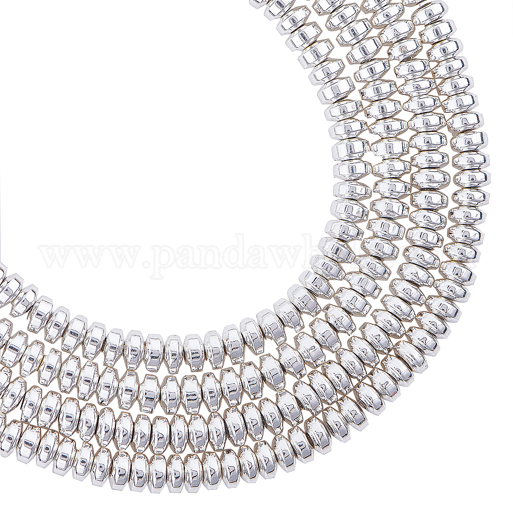 • с Покрытием Серебра Гальванизировать немагнитных синтетический гематит нитей бисера, рондель, со серебряным покрытием, 4x2 мм, отверстие : 1 мм, около 180 шт / нитка, 15.7 дюйм (39.87 см), 2 пряди / коробка