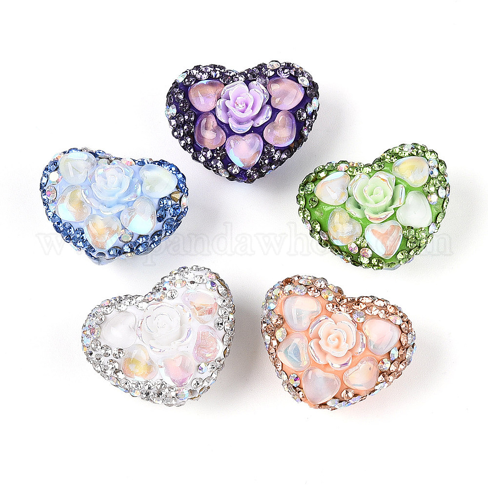 Полимерная глина в форме сердца, украшенная стразами, с цветком из смолы и стеклом, фокусные бусины для ручек с бусинами изготовление бижутерии брелок