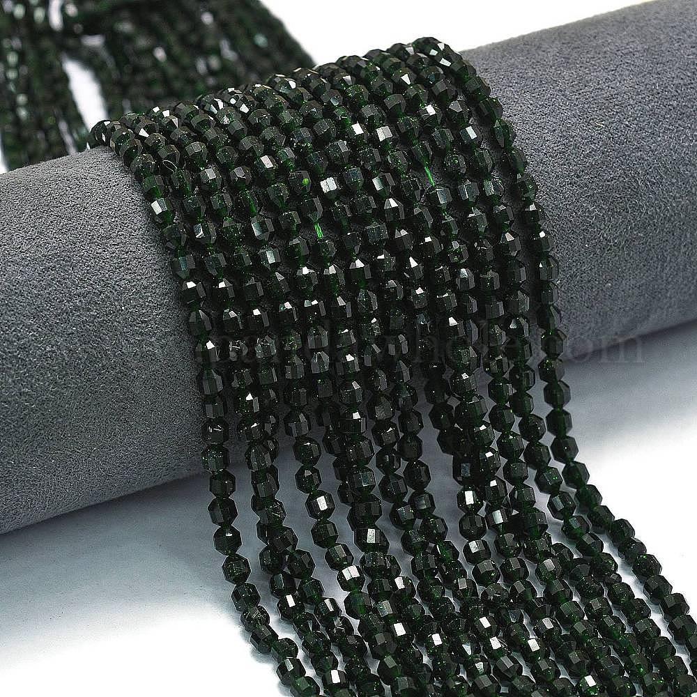 • Зеленый Голдстоун Синтетический зеленый авантюрин бисер нитей, энергетическая призматическая огранка с двойными концами бусины, граненые двухконусные, 4x4.5 мм, отверстие : 0.4 мм, около 83 шт / нитка, 14.96'' (38 см)