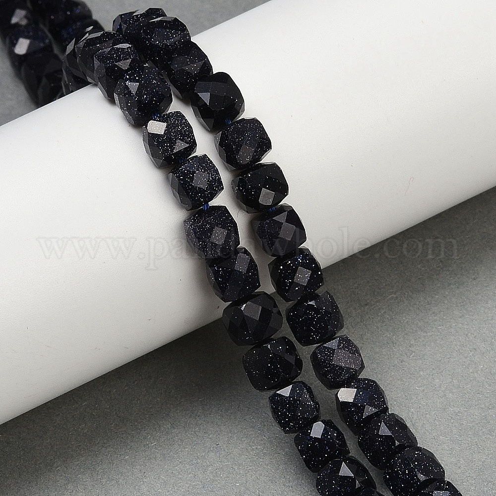 Синтетический синий авантюрин бисер нитей, граненые, кубические