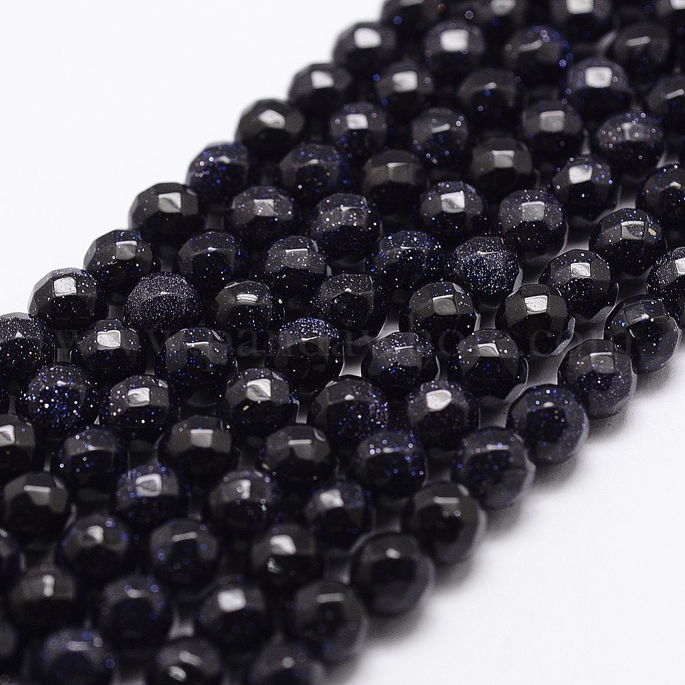 Синтетический синий авантюрин бисер нитей, граненые, круглые