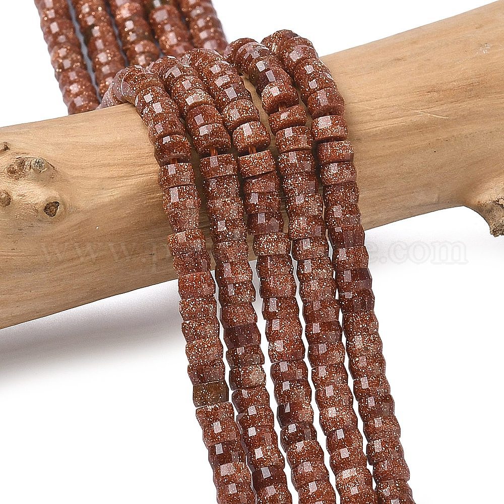 Нити из синтетических бусин хейши из золотистого камня, граненые, рондель