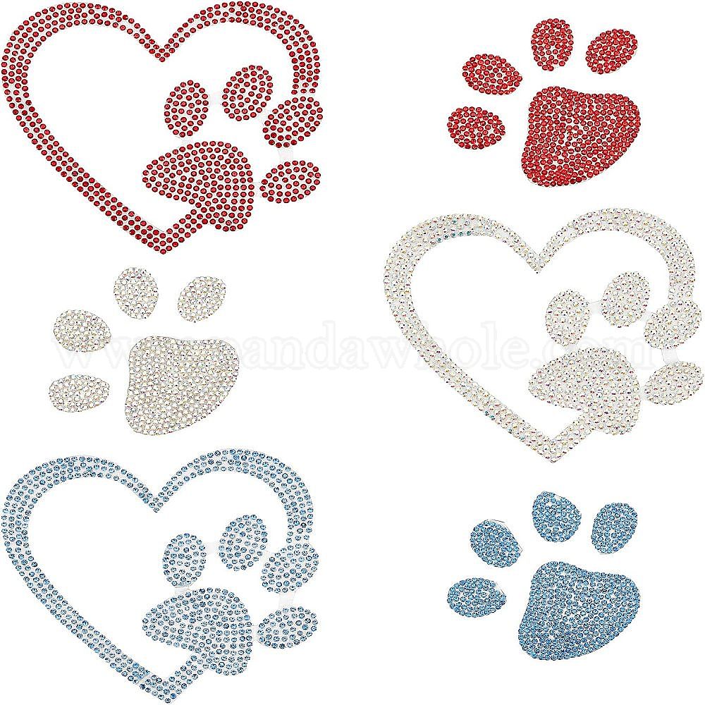 Блестящие стразы с эффектом горячей фиксации в виде сердца и отпечатка лапы, железо на заплатах, термоклей на спине, платье обувь украшения одежды