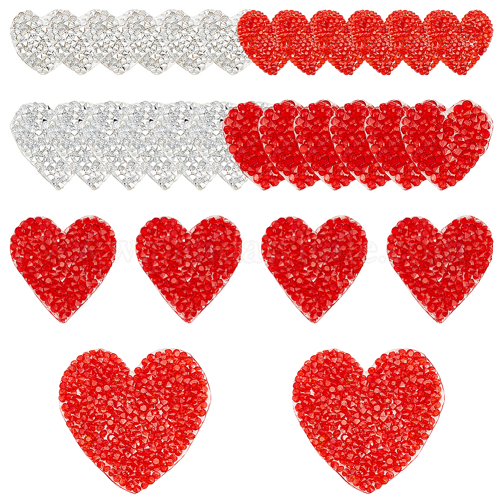 Нашивки в форме сердца со стразами, приклеиваемые утюгом: примерно 25x25x2.5мм, 2 цветов, 6 шт / цвет, 12шт.;