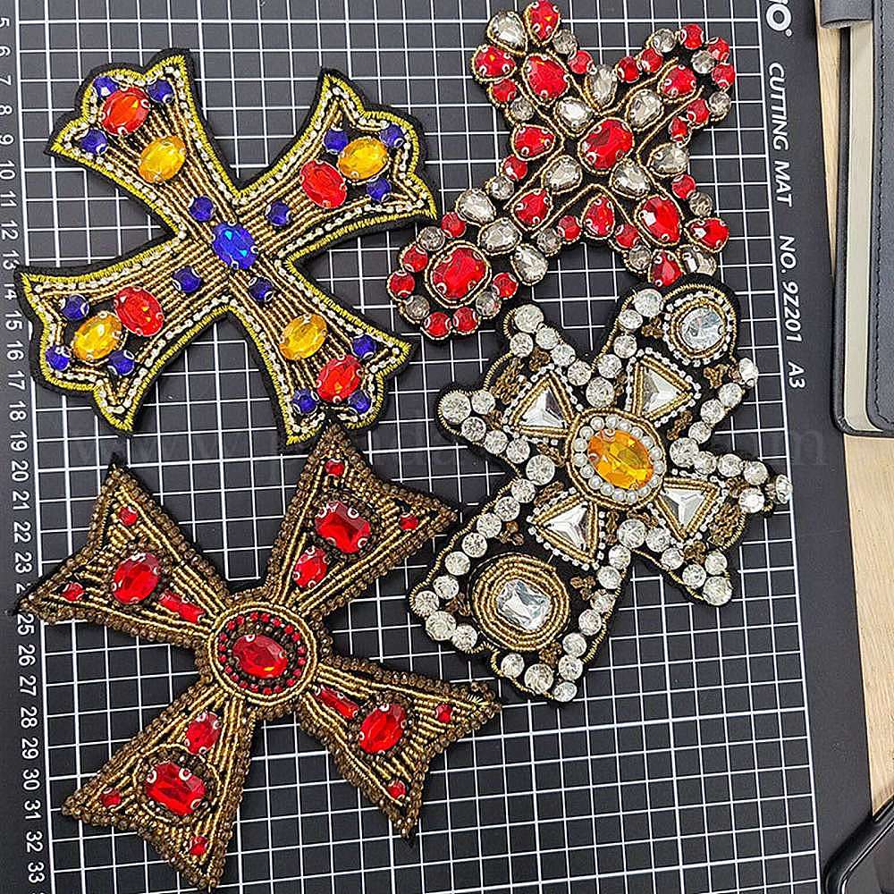 Перекрестные заплатки из ткани, аппликации из стеклянных бусин, наклеить патч, термонашивки со стразами, аксессуары для костюма