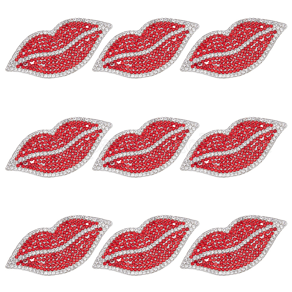 • Красный Стразы из смолы, термоклеящиеся стразы, губа, красные, 27x62x1.5 мм