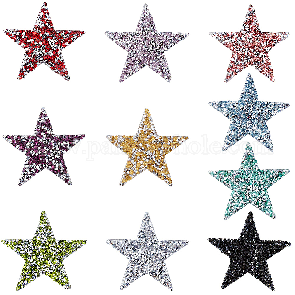 20 шт. 10 цвета пластиковые заплатки для одежды, cmолой горный хрусталь, звезда (037B8T)