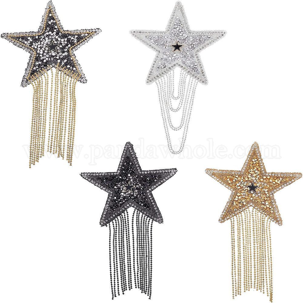 нашивки на ткани со звездными стразами: шириной около 87 мм, 148 мм длиной, толщиной 2 мм , 4 цветов, 1 шт / цвет, 4 шт;