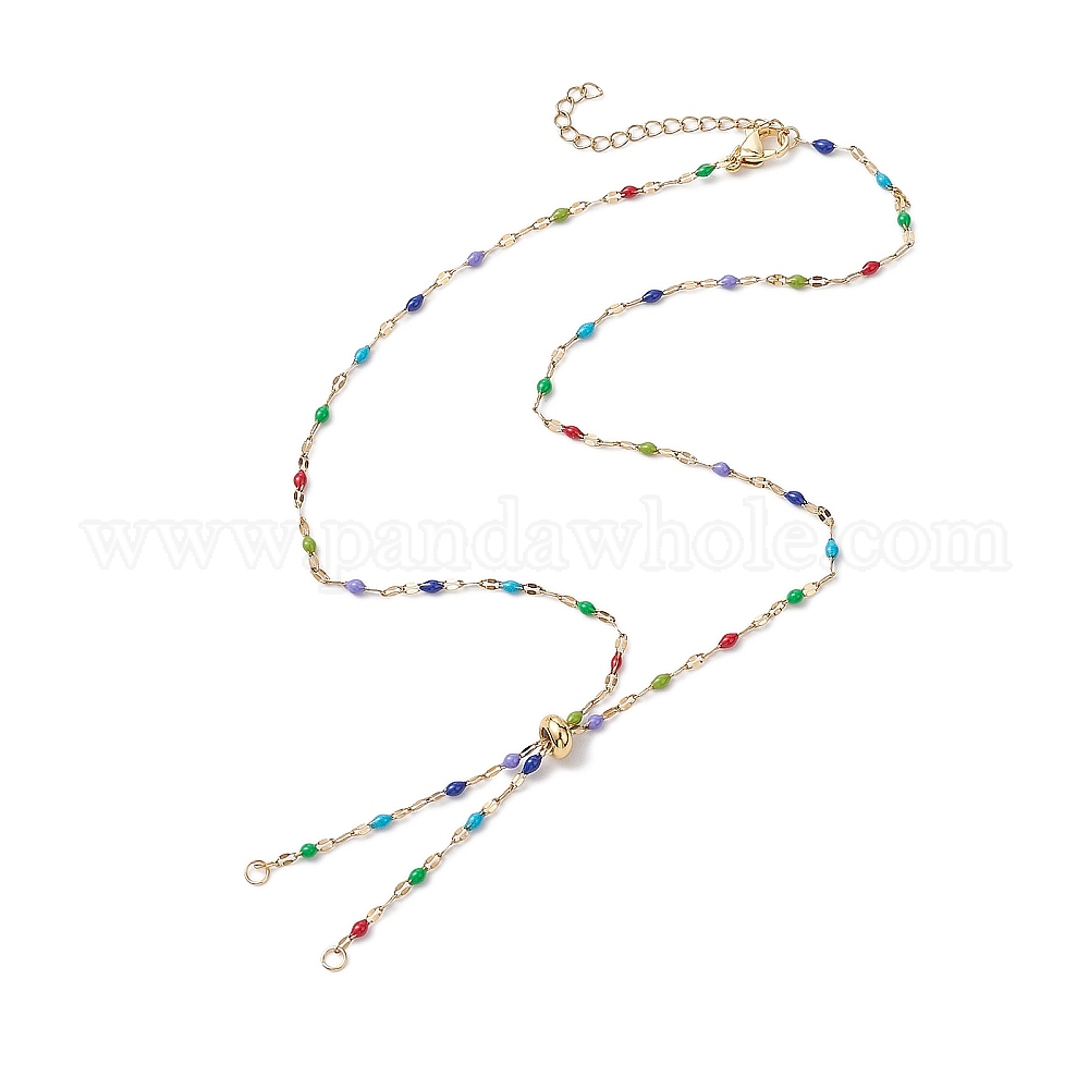 304 изготовление ожерелья из нержавеющей стали с разноцветной эмалью, с латунными скользящими бусинами