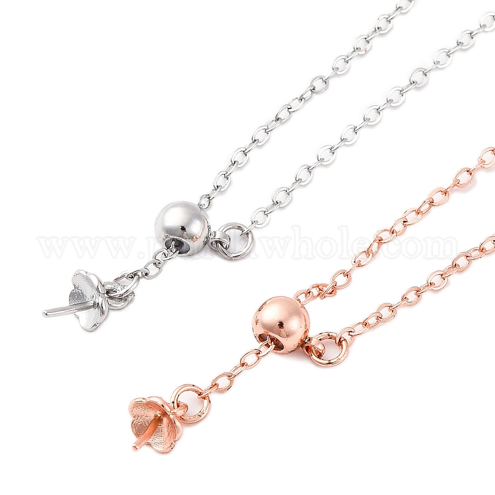 Ожерелья-цепочки из латуни для женщин, с 304 карабином из нержавеющей стали и подвеской в виде цветка, стойки покрытие, без свинца и без кадмия, долговечный, за половину пробурено бисера
