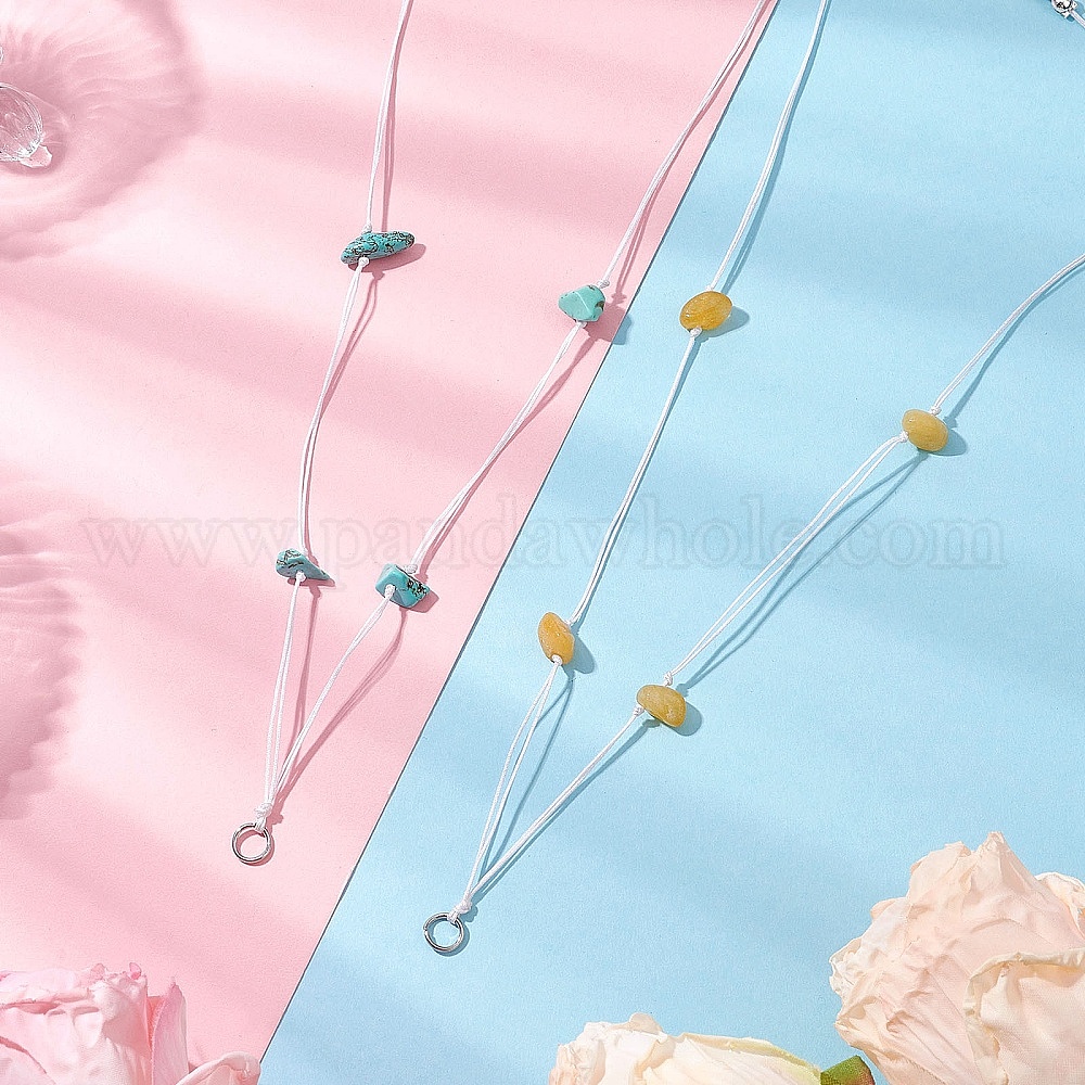 Изготовление ожерелий из бисера с драгоценными камнями с 304 соединительными кольцами из нержавеющей стали и нейлоновой нитью, цвет нержавеющей стали