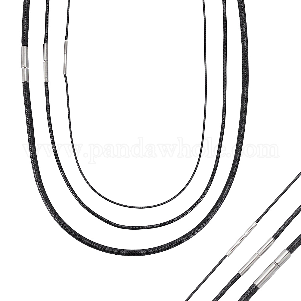 • Нержавеющая Сталь Цвет 6 шт. 3 стили изготовление ожерелий из черного вощеного шнура, с 304 нержавеющей стали застежки, цвет нержавеющей стали, 21.85~22.32 дюйм (55.5~56.7 см), 1~3 мм, 2 шт / стиль