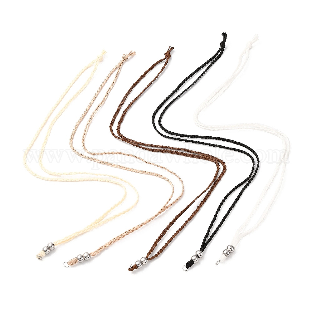 5 шт. вощеный полиэстеровый шнур для изготовления регулируемых ожерелий, с 304 кольцами и бусинами из нержавеющей стали