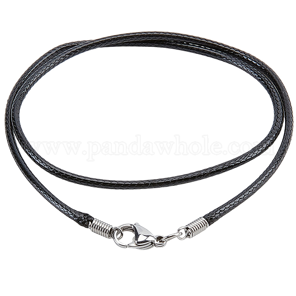 5шт. 2.5мм круглый вощеный шнур для изготовления ожерелий, из нержавеющей стали застежками, цвет нержавеющей стали