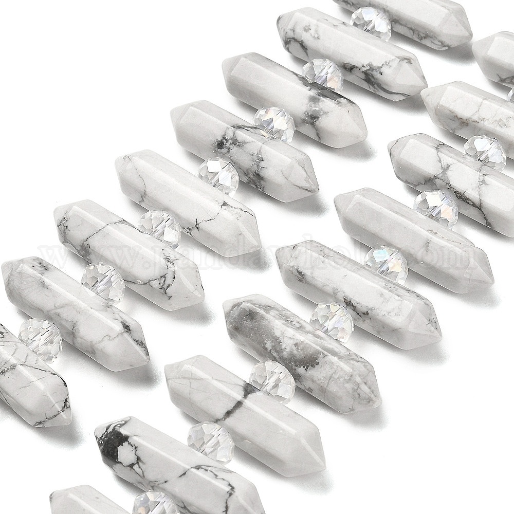 • Говлит Нити бусин из натурального хаулита с двойными концами, со стеклянными бусинами, граненый пуля, 31~33x7~9x7~9 мм, отверстие : 1 мм, около 26~27 шт / нитка, 15.16~15.75'' (38.5~40 см)