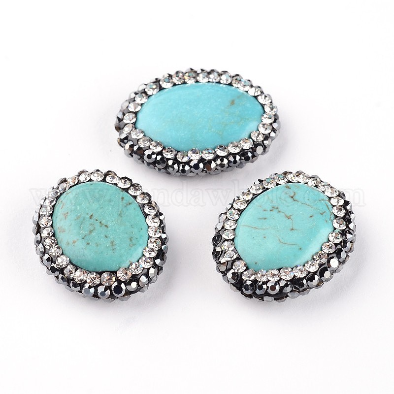 Окрашенные и нагретые овальные натуральные бусиловые бусины, с полимерной глиной горный хрусталь, 19~20x16x4~5 мм, отверстие : 0.5 мм