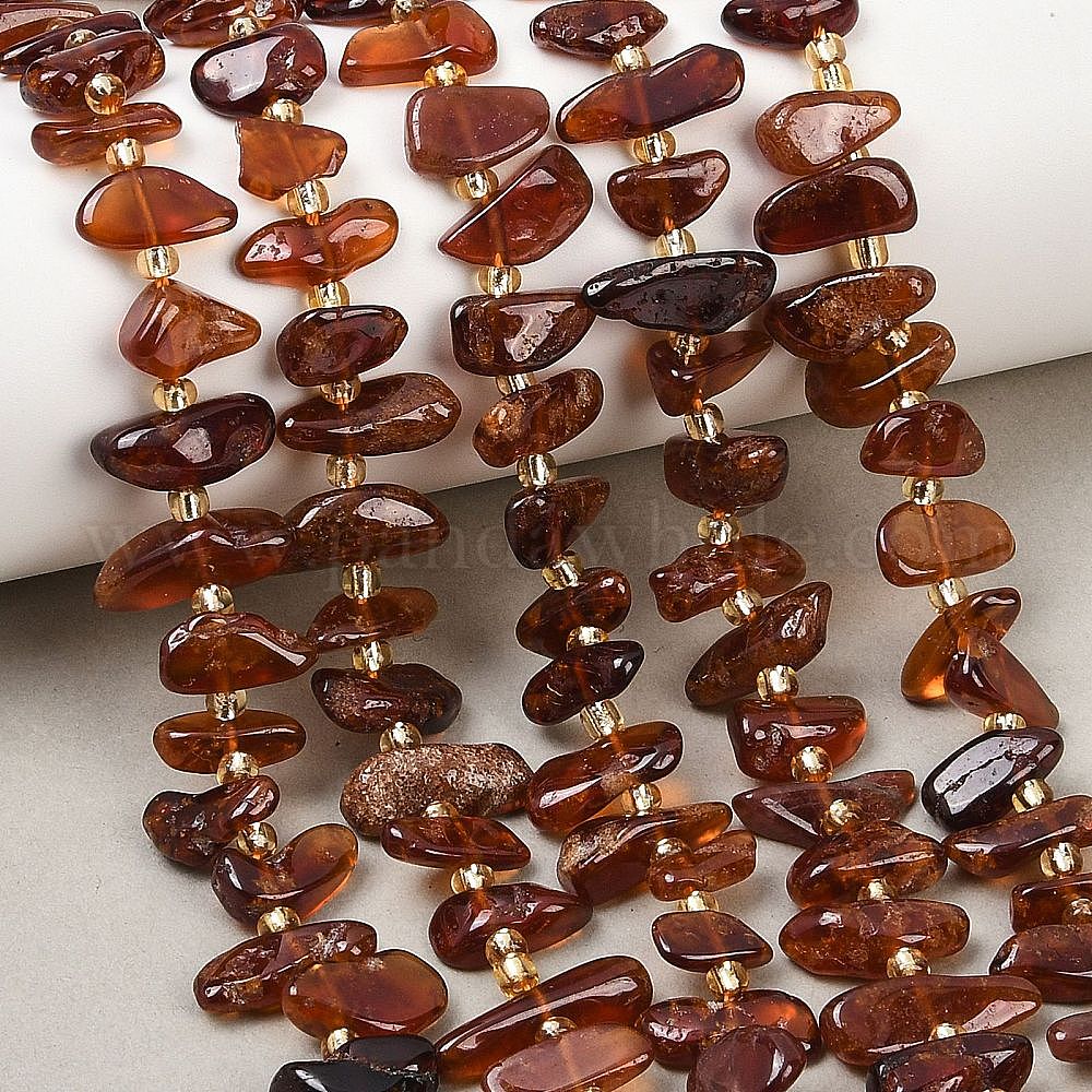Натуральный оранжевый гранатовый бисер пряди, самородки, с бисером