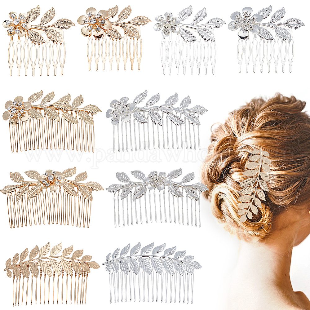 10 шт 10 стиль свадебные цветы и листья железные гребни для волос, аксессуары для волос для женщин