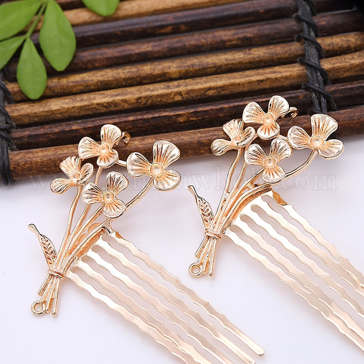 • Золотой Латунь волос расчески, аксессуары для волос для женщин и девочек, цветок, золотые, 60x45x2 мм