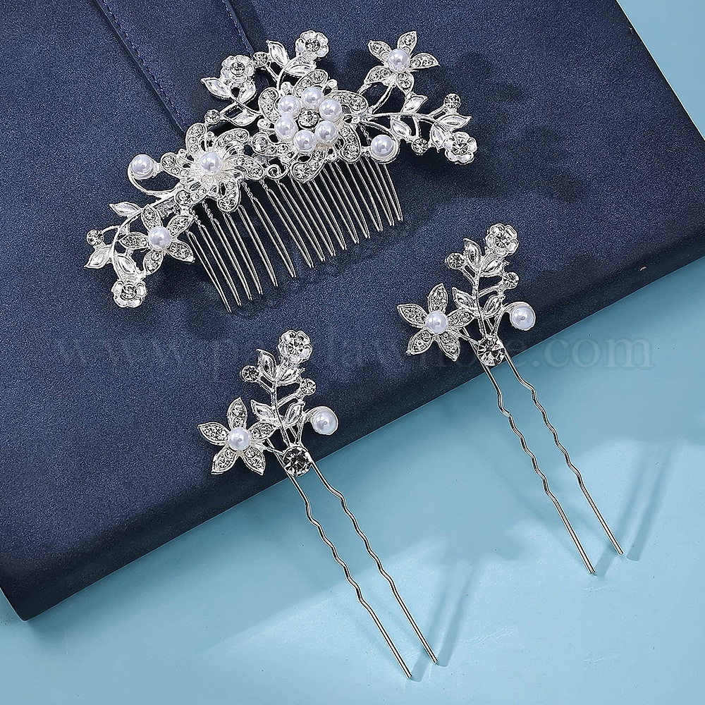 3шт. гребни для волос из сплава со стразами, аксессуары для волос для женщин, цветок