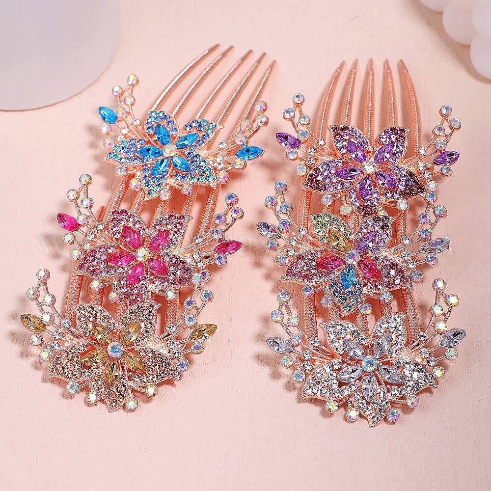 • Кристалл Сплавочная гребенка со стразами для волос , цветок, аксессуары для волос для женщин и девочек, кристалл, 90x68 мм