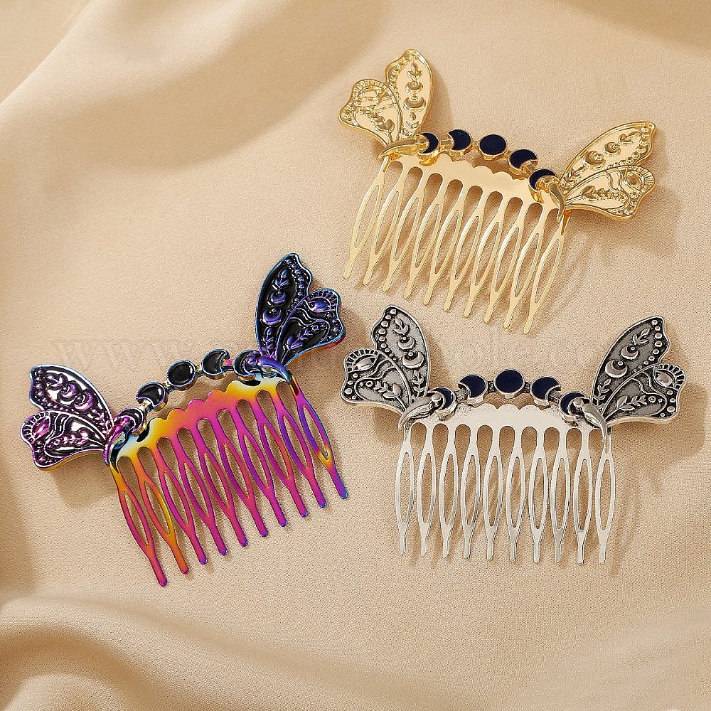 • Rainbow Color Гребни для волос из сплава крыльев, аксессуары для волос для женщин и девочек, Радуга цветов, 68x85 мм
