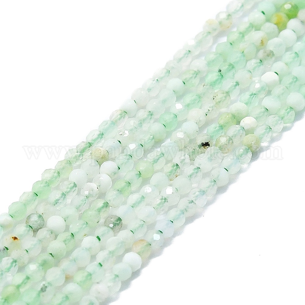 Натуральные хризопразные бисерные пряди, граненые, круглые