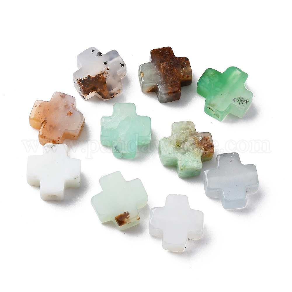 • Хризопраз Бусины из натурального халцедона, крестик, 8x8x3 мм, отверстие : 1.2 мм