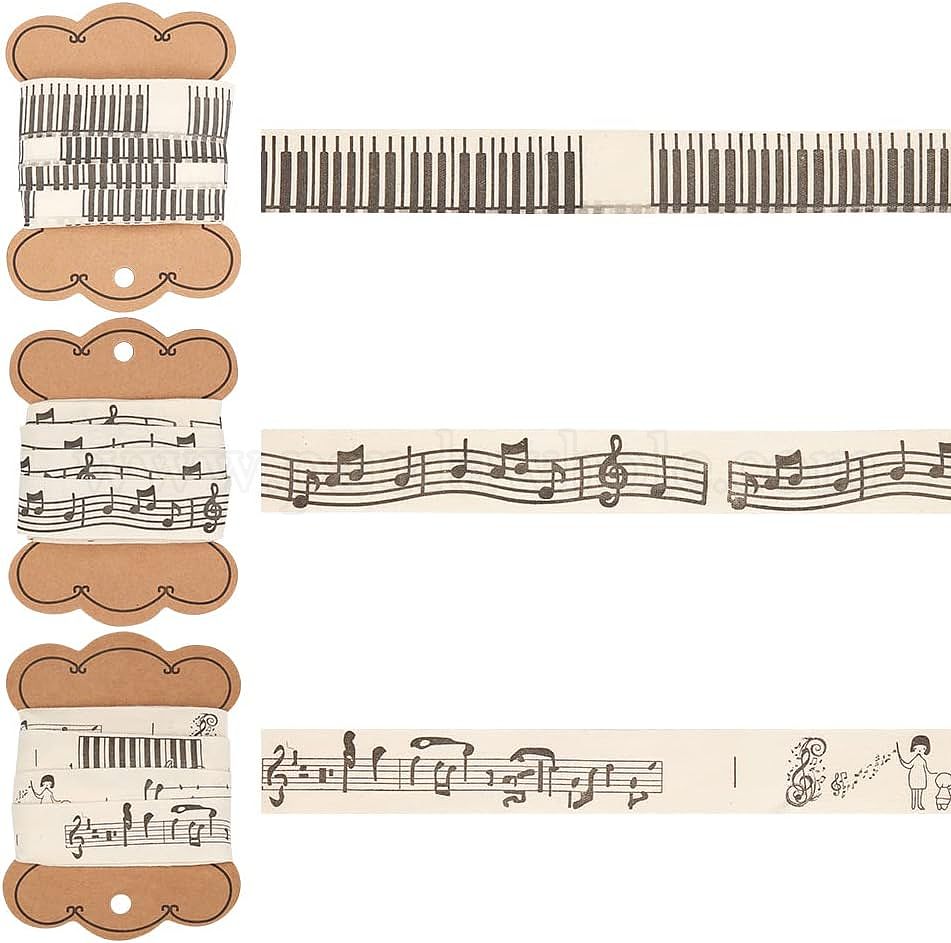 • Musical Instruments 12m 3 стили печатные хлопковые ленты, для упаковки подарков, цветочные банты поделки украшения, бежевые, образец музыкальных инструментов, 3/4 дюйм (20.5 мм), о 4м/стиле
