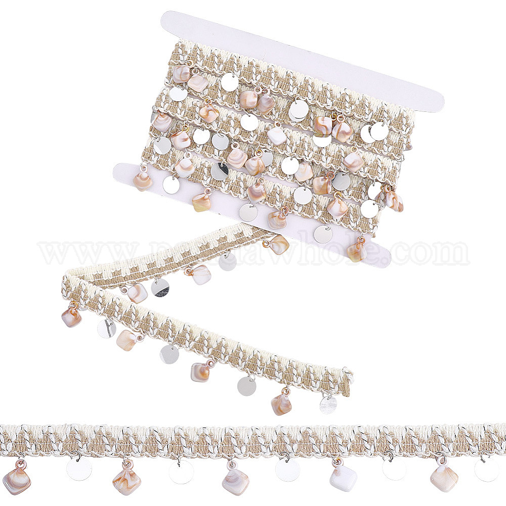 3м хлопковая лента, круглые, с пайетками и подвесками из смолы