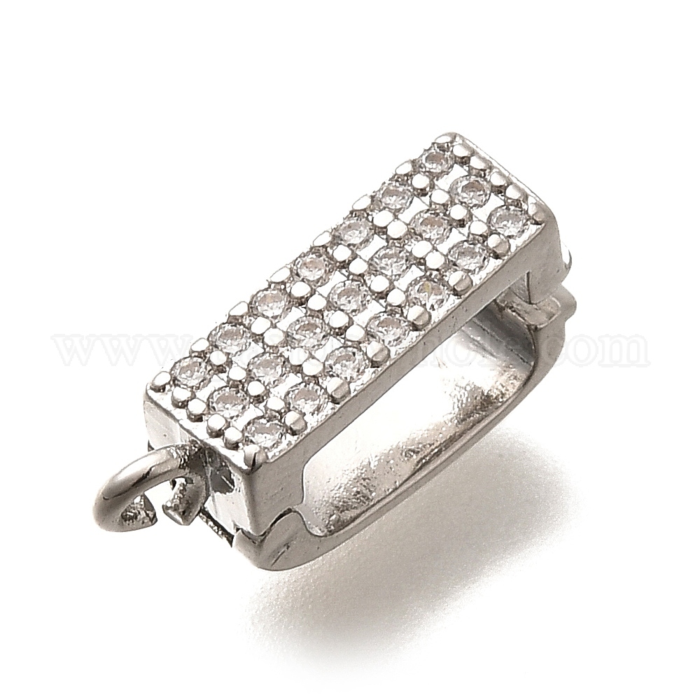 • Платина Застежки-кнопки из латуни с микропаве из прозрачного кубического циркония, без кадмия, без никеля и без свинца, платина, 15x4.5x6.5 мм, отверстие : 1.6 мм