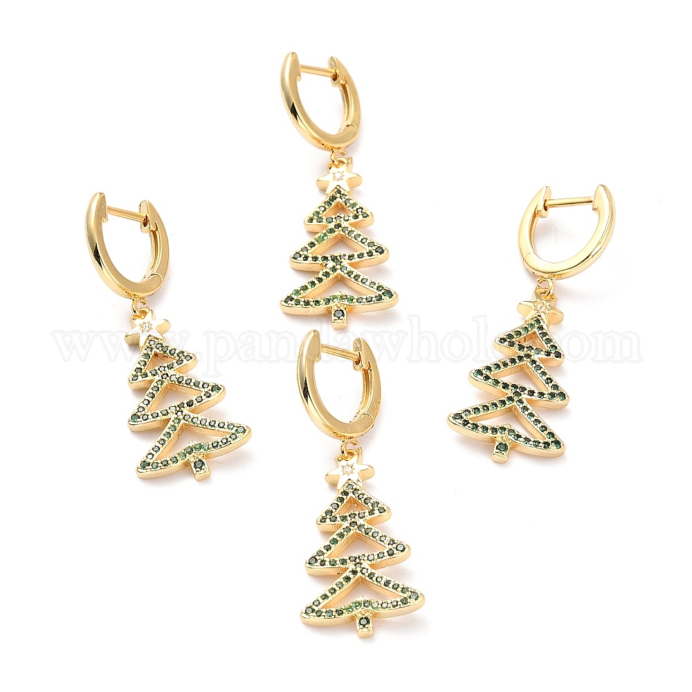 Серьги-кольца Huggie Huggie из латуни с микропаве и кубическим цирконием на рождество, без свинца, без кадмия и с низким содержанием никеля, рождественская елка, зелёные