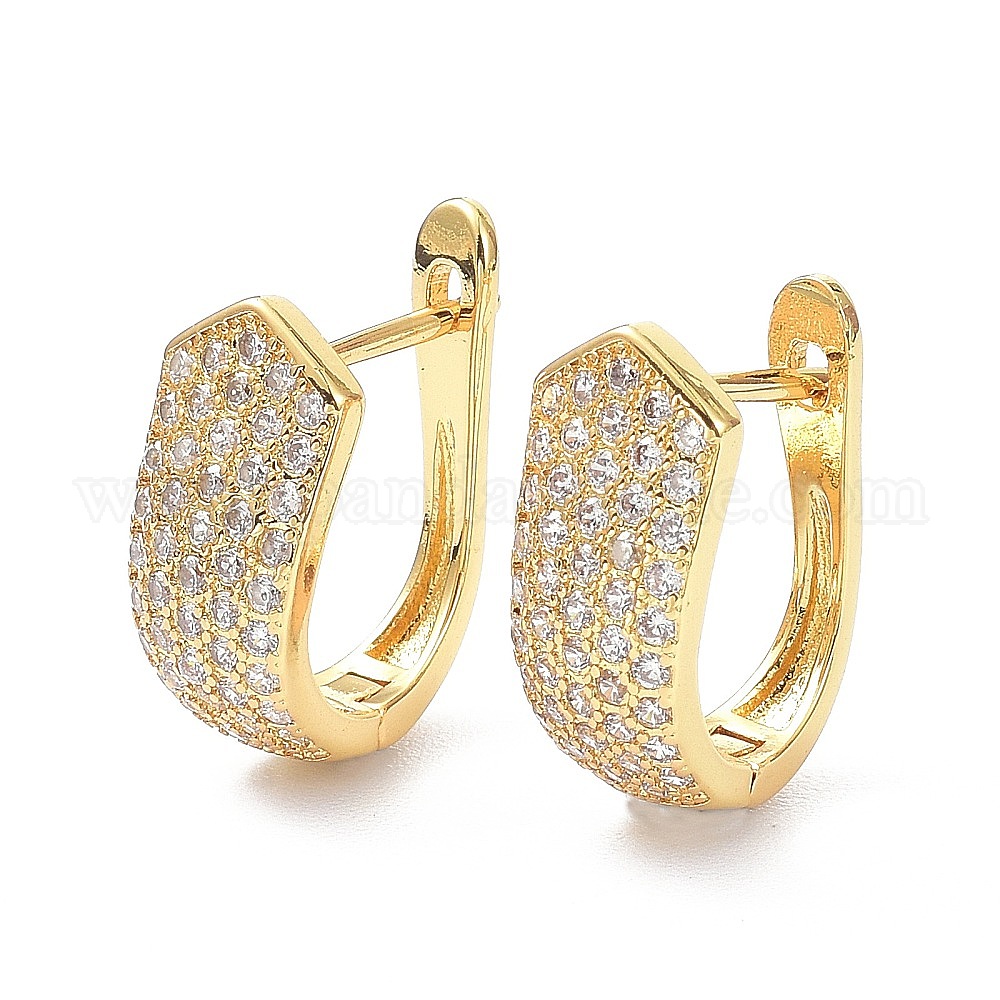 • Настоящее золото 18K Прозрачные кубические циркониевые массивные серьги-кольца для женщин, штифт из латуни с микропаве из кубического циркония, реальный 18 k позолоченный, 16.5x13x7.5 мм, штифты : 0.8 мм