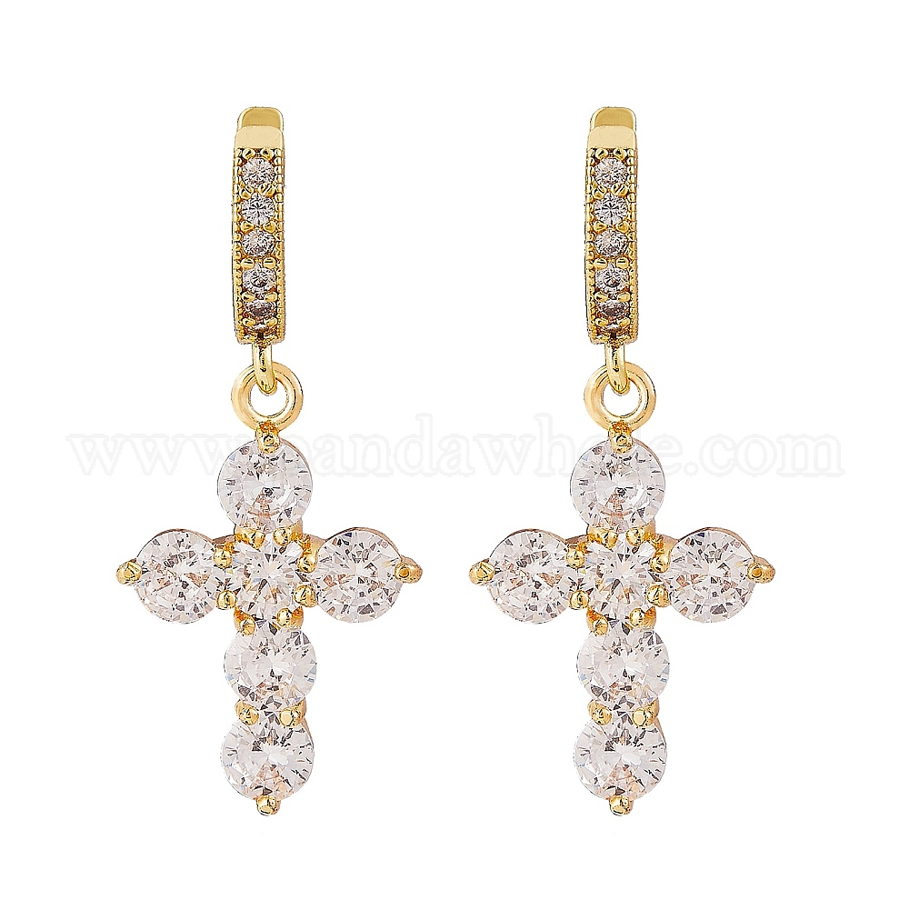 Прозрачные кубические циркониевые серьги-кольца с крестом для женщин
